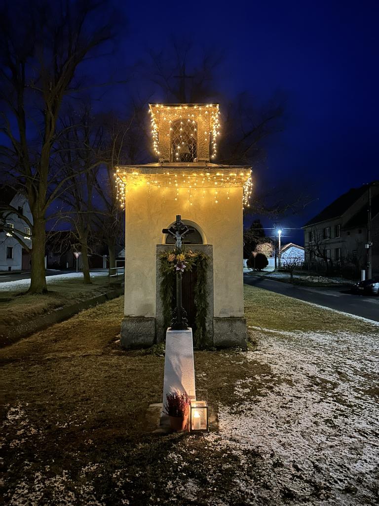 Fotky z Vánočního jarmarku a fotky kapličky s elektronickým bitím.